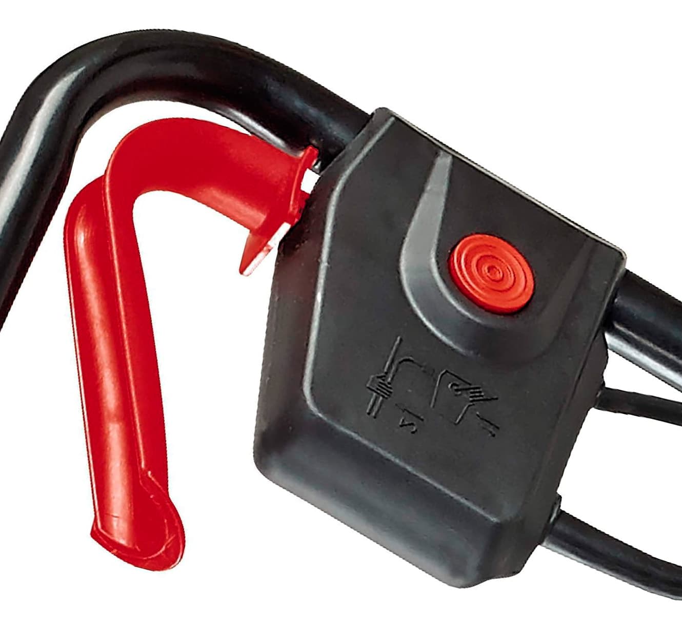 - Seguridad: Incluye un sistema de seguridad de dos puntos, asegura que la motoazada se detenga inmediatamente cuando dejas de presionar el botón, lo que aumenta la seguridad durante su uso.